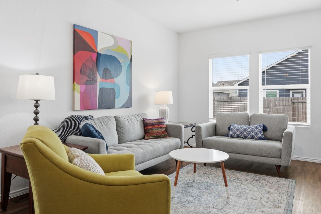 Welcome to this beautifully maintained two-story home that blends modern comfort with everyday convenience. Built just five years ago and lovingly cared for, this residence offers 4 spacious bedrooms and 2.5 bathrooms in a light-filled, open floor plan designed for both living and entertaining. Offered with the option to be sold fully furnished, this property presents a rare opportunity for a turnkey mid-term rental or an effortless primary residence. Large windows throughout flood the home with natural light, highlighting the homes pristine condition and thoughtful layout.The main living areas flow seamlessly into the kitchen, where all appliances convey, making this home truly move-in ready. Upstairs, generously sized bedrooms provide flexibility for family, guests, or a home office. Step outside to a large backyard?perfect for relaxing, play, or future outdoor enhancements.Located in a quiet community, this home offers quick access to major highways and is just minutes from Southwestern University, downtown Georgetown, schools, dining, and shopping. A home that has been exceptionally cared for and is ready for its next chapter.
