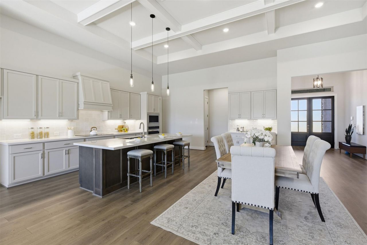 Welcome to a private 1.49-acre retreat in the gated, equestrian community of Twin Creek Farms. Completed in January 2026, this custom single-story home is thoughtfully designed for modern living, offering timeless finishes and a seamless indoor-outdoor lifestyle. The open floor plan includes four bedrooms, three full bathrooms, and a dedicated study or office, all on one level?ideal for both everyday living and entertaining. A wall of sliding glass doors opens to the covered patio, creating an easy connection to the outdoors and framing peaceful views of the surrounding acreage. The kitchen is both inviting and functional, featuring Brandon cabinetry, Omega Stone countertops, a large center island with bar seating, built-in ovens, an electric cooktop, ample counter space, and a walk-in pantry. Throughout the home, quality craftsmanship is evident with RevWood Seaside Reserve plank flooring, 8-foot interior doors, brushed nickel hardware and plumbing fixtures, and a coordinated lighting package. The primary suite serves as a relaxing retreat, with a spa-inspired bathroom finished with quartz countertops, stained cabinetry, and 12x24 matte tile. A three-car garage adds flexibility and generous storage. The property is located near a portion of Opossum West Creek, a wet-weather creek that enhances the natural setting while remaining outside of any flood zone. Conveniently situated approximately 15 minutes from central Georgetown, the home offers easy access to I-35 and SH-130, along with nearby shopping, a new H-E-B, hospitals, and a variety of restaurants. Fiber and Western Broadband internet are available. This is a rare opportunity to enjoy new construction on acreage in one of Georgetowns most desirable gated communities.