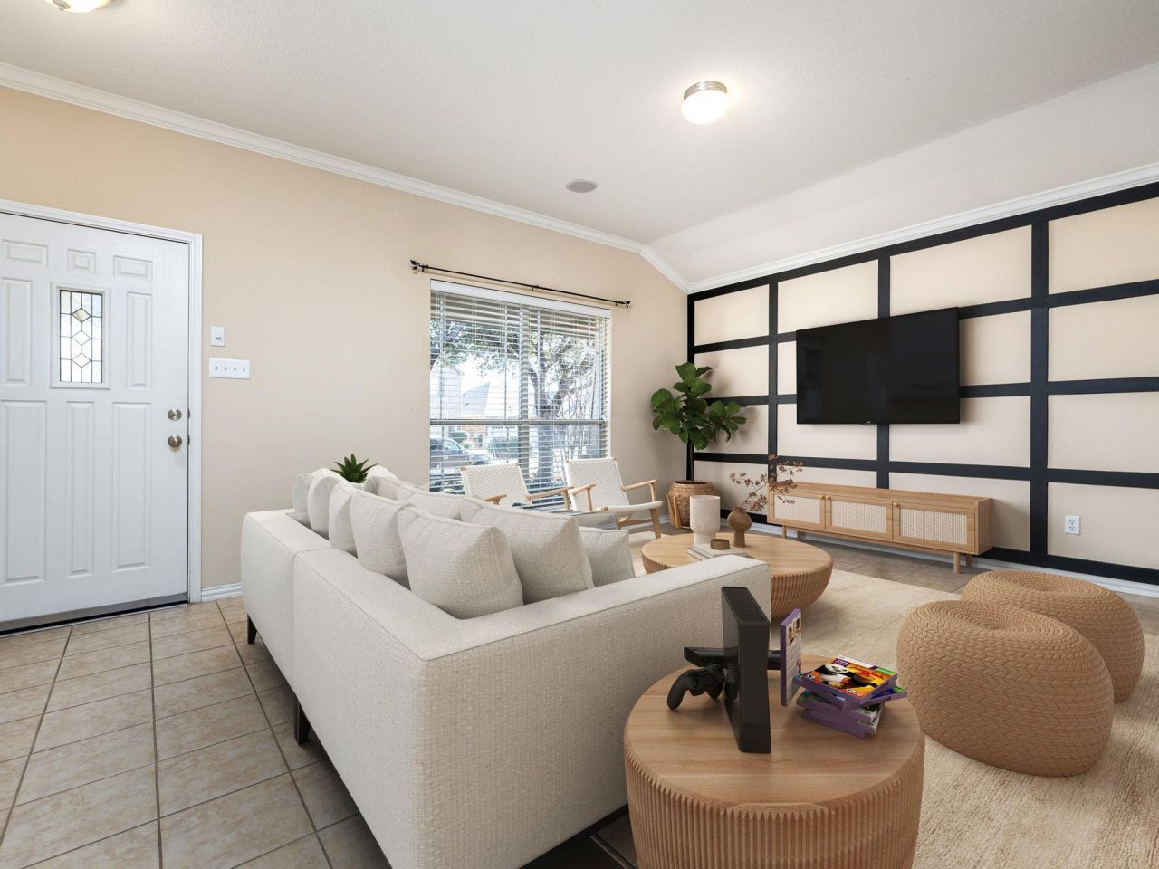 Welcome home to this stunning one-story former Centex model?designed to impress and meticulously maintained! Step into an open-concept layout where tile flooring flows seamlessly through the spacious kitchen, living, and dining areas, creating a bright, clean, and inviting space for everyday living and entertaining.The primary suite is a true retreat, featuring warm wood flooring and a private bath with ADA-compliant doorway access for added convenience. Secondary bedrooms are comfortably carpeted, and youll love the charming built-in art/picture niches?perfect for showcasing your style and favorite pieces.At the heart of the home, the kitchen shines with sleek black granite countertops and a built-in work desk, ideal for meal planning, homework, or a tucked-away home command center. Need space? The oversized garage is a rare bonus?room for storage, a workshop setup, bikes, and more.Flexible and functional, this home can live as a 3/2 or 4/2, with the extra room ready to be your office, gym, hobby room, or guest space. Prime location, great condition, and model-home charm?this one is a must-see!