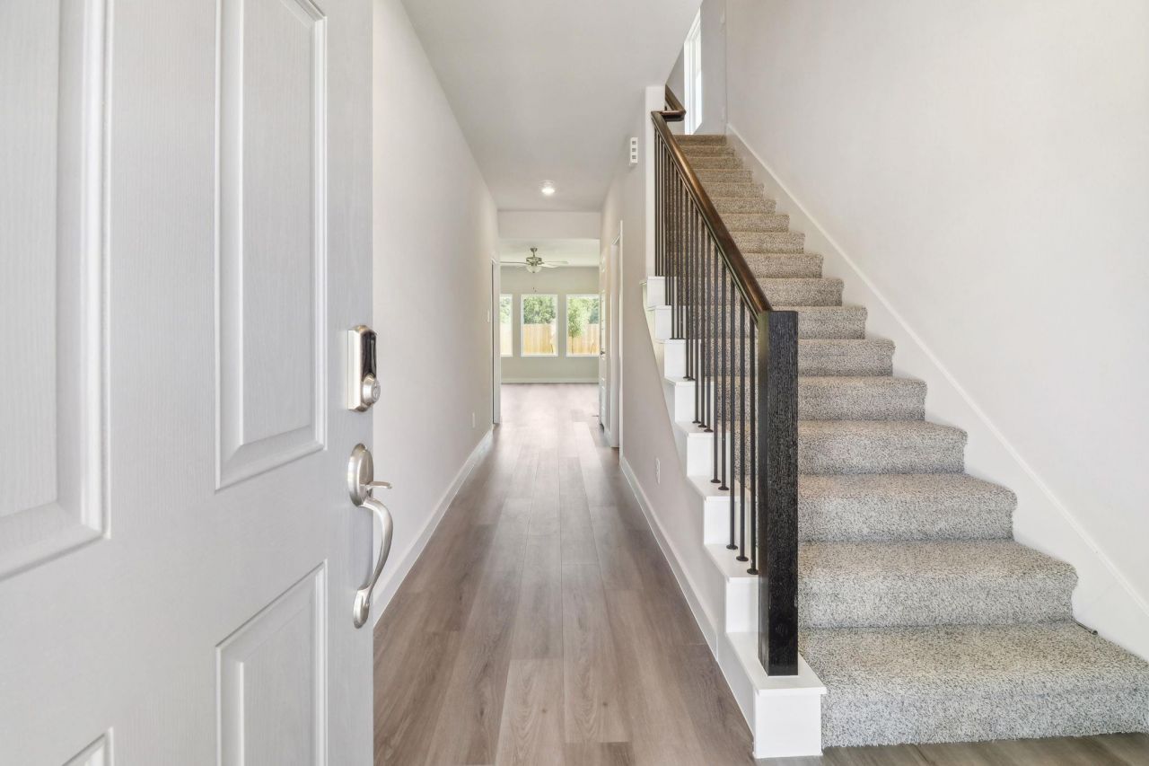 Brand new, energy-efficient home available by May 2026! The Bryce features a second-story loft area that the kids will love. Slate cabinets with marble-look white quartz countertops, cool brown laminate flooring, and multi-tone taupe carpet in our Finesse package. Small-town charm meets big-city amenities in the heart of this Liberty Hill community. Situated just off Hwy 29, the Americana Collection at Butler Farms offers functional floorplans with fabulous included features like walk-in showers, covered patios and designer curated interior packages. Find your dream home in this gorgeous community located in the highly-acclaimed Liberty Hill ISD. Each of our homes is built with innovative, energy-efficient features designed to help you enjoy more savings, better health, real comfort and peace of mind.