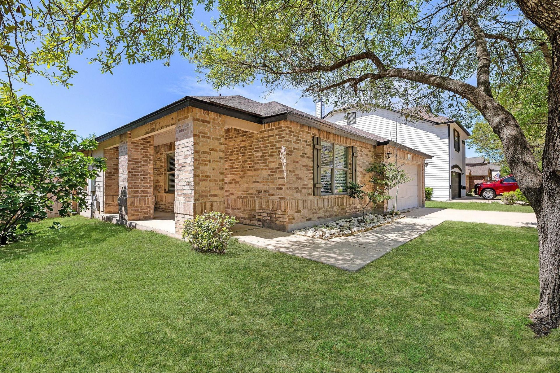 Ideally located in the Woodland Park neighborhood of Georgetown, near scenic trails and shopping, this charming single-story home offers the perfect blend of comfort, and convenience. Woodlake Park is steps away, while nearby access to Lake Georgetown and the San Gabriel River Trail makes it easy to enjoy the outdoors. Inside, youll find an open floor plan with a spacious living area, along with a versatile flex space, ideal for a home office, formal dining, or an additional living area. The home also offers a large primary bedroom with walk-in closet and generously sized secondary bedrooms. The kitchen features a center island, breakfast area, and flows seamlessly into the main living space, making it perfect for everyday living and entertaining. The covered back patio is perfect for relaxing or hosting guests, along with a private backyard space. The major system updates provide peace of mind, including flooring (2025), fence faces (2024), water heater & water softener (2023), HVAC (2022), and roof (2020)! Conveniently located within walking distance to HEB, Sprouts, restaurants, coffee shops, and everyday amenities, and zoned to Georgetown ISD schools, this home offers a great balance of comfort, location, and lifestyle.