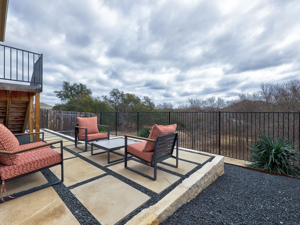 Cute 4 bedroom, single story home with a view in Georgetown. Complete xeriscaped backyard with no neighbors behind you. Home sits up on a hill and gives views of hiking trails and wooded area. Covered patio plus an additional seating area in yard. Fully fenced and we welcome pets! Plantation shutters thru out the home, stone counters, stainless appliances, kitchen island/breakfast bar, refrigerator, washer and dryer supplied for tenant. White 42 inch cabinets in kitchen. Hard tile thru out home except in bedrooms. Primary suite has tiled, walk in shower and two sinks.The community has awesome amenities to enjoy...pool, sport court, hiking trails, playground. Available for a June 1 lease start date. Call for your private showing today!