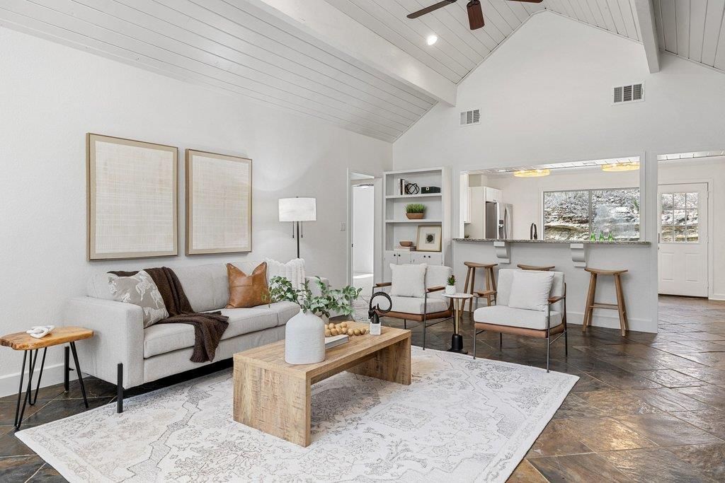 Adorable One-Story in Charming Old Lakeway on a beautiful 1/3-Acre LotNestled beneath towering oak trees on an expansive 1/3-acre lot, this beautifully refreshed one-story home captures the relaxed charm and unbeatable lifestyle of Old Lakeway. Thoughtfully refreshed in February 2026, the home features soft white interior paint on walls, ceilings, cabinets, and trim, designer lighting throughout, and plush carpet?crisp, current, and truly move-in ready. All appliances including refrigerator, washer and dryer convey!The fabulous open floor plan offers a vaulted living room that flows seamlessly into the eat-in kitchen, creating an inviting space for everyday living and entertaining. The kitchen features granite countertops, a breakfast area, and open sight lines to the living room, making it both functional and welcoming. Three well-proportioned bedrooms and two full baths complete the thoughtful layout within 1,588 square feet of light-filled living space.The primary bedroom is a true retreat, featuring a private sitting room ideal for a home office, reading nook, or quiet escape. Step outside to a private, fenced backyard shaded by majestic oak trees?perfect for relaxing, entertaining, or enjoying the peaceful Old Lakeway setting.Major system updates provide peace of mind, including a roof and HVAC replacement in 2020, electrical updates, and connection to Lakeway MUD for sewer service. Originally built in 1971, the home has been extensively updated to blend classic Lakeway character with modern comfort.The location is exceptional?walk to the Lakeway tennis courts, private golf course, Lakeway Marina, and the iconic Lakeway Resort & Spa. Zoned to highly regarded Lake Travis ISD schools, this home offers an incredible opportunity to enjoy the best of Lakeway living in a setting that feels both established and serene.