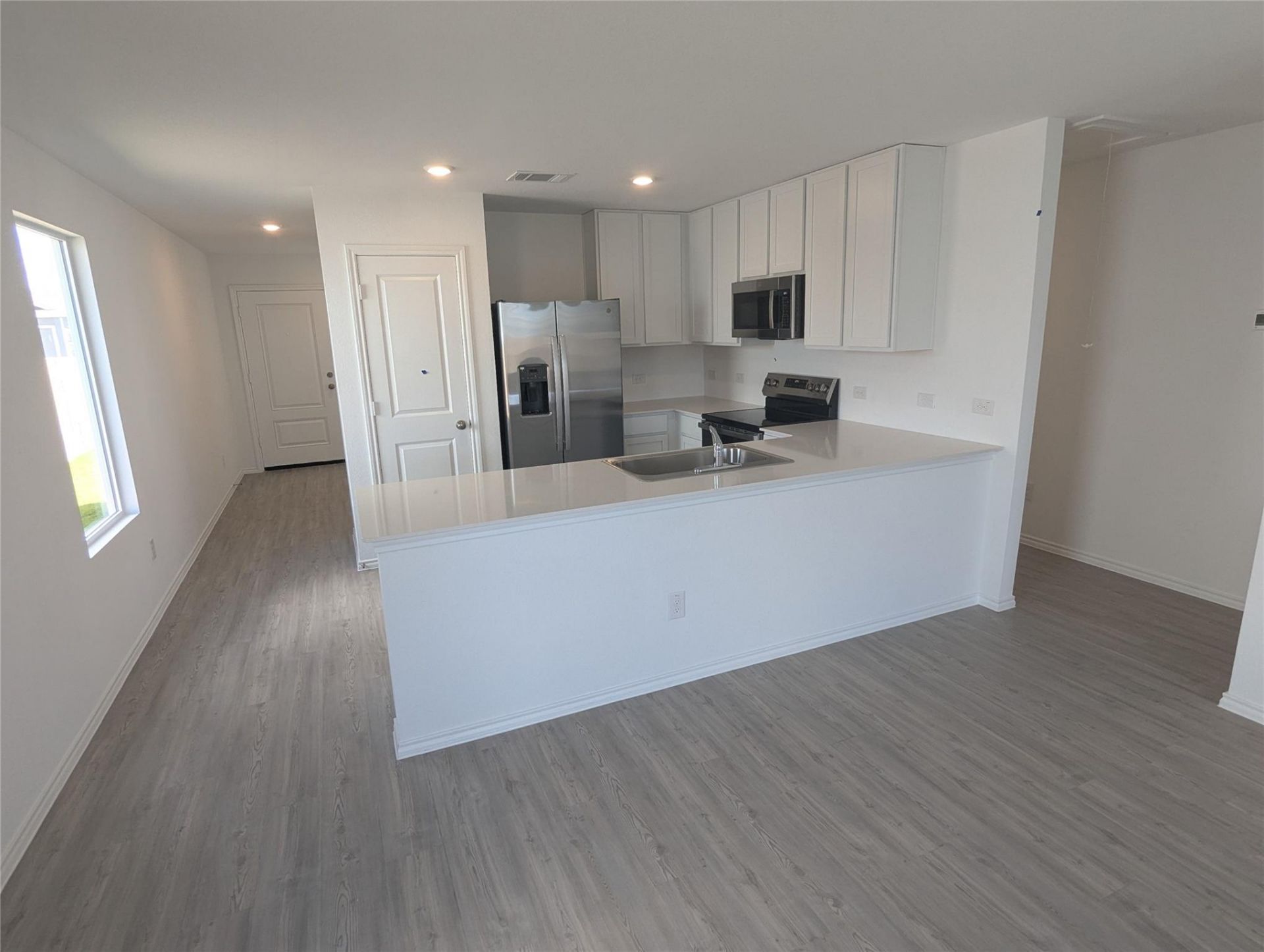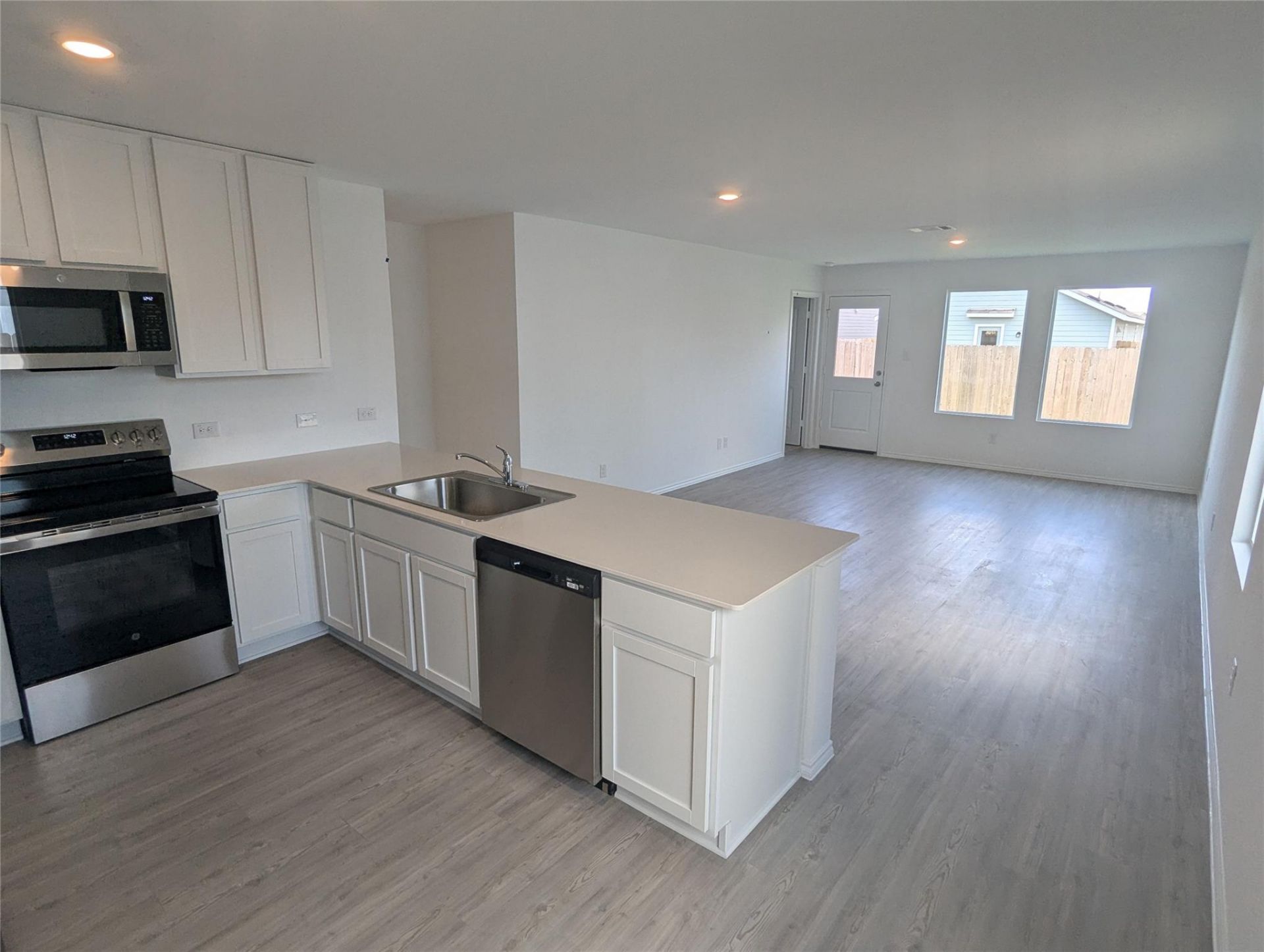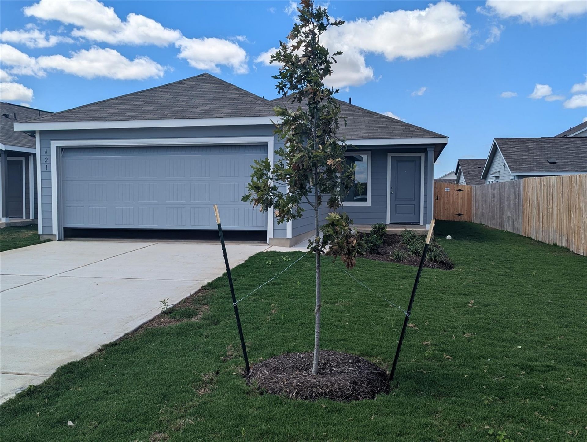 Like new one story home across from community center with swimming pool, tennis court, playground. Kitchen has quartz counters, stainless appliances including refrigerator open to living room, vinyl plank floors everywhere except carpet in bedrooms, MIL floorplan, master has walkin shower and walkin closet, washer/dryer included. Auto sprinkler system, privacy fenced back yard, 2 car garage with remote opener. 1 mile to IH35, restaurants, 10 minutes to Georgetown.