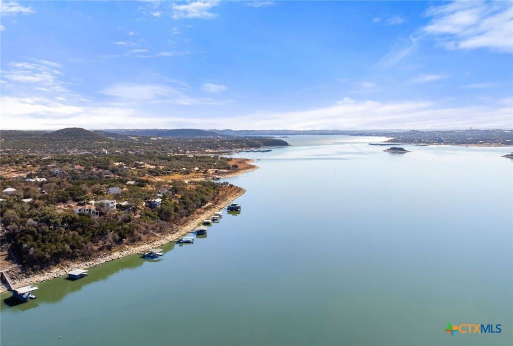 This deep-water Lake Travis property in Volente offers main-body waterfront, incredible lake views, and one of the best values currently available at its price point. With deep-water frontage, the property is well positioned for a future dock while already providing shoreline access. Elevated above the lake, the home captures sweeping lake views and year-round usability. The home will convey with newly purchased furnishings, allowing buyers to enjoy the property immediately or update at their own pace. Well suited for use as a private lake house or a potential short-term rental with approval from Village of Volente. The floor plan includes three bedrooms and two and a half bathrooms, with an open main level featuring a spacious kitchen, dining area, multiple living spaces and access to two expansive decks that extend the living space outdoors. The upper-level bedroom enjoys stunning lake views, private deck access, and a dedicated bath and study. Located in a quiet waterfront neighborhood with a single point of entry, the setting feels private while remaining highly convenient?just 10 minutes to Four Points (620 & 2222) for shopping, dining, and entertainment, and approximately 30 minutes to downtown Austin. The property is zoned to highly rated schools, including Grandview Hills, Four Points Middle, and Vandegrift High School, and is close to local favorites such as Volente Beach Club, Beachside Billys, Shack 512, Stiechen Park, and a nearby fire station. Offering deep water, main-lake access, panoramic views, and immediate usability, this property stands out as a rare opportunity on Lake Travis?priced at lot value and ready to enjoy from day one.